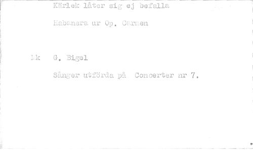 //// Kärlek 1&te sir): ej befalla habanera ur Op, Carinen //// 'j.k G. Bigel //// Sånger utförda p. Concerter nr 7. ////