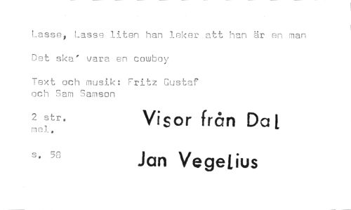 //// Lasse, Lasse liten han leker att han är en man Det ska' vara en cowboy //// Text och musik: Fritz Gustaf och Sam Samson //// 2 str. mei. Visor från Da t //// s, 58 Jan VegeLius ////
