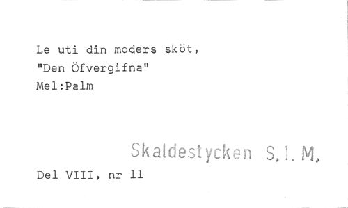 //// Le uti din moders sköt, "Den Öfvergifna" //// Mel:Palm //// Skaldestycken S, i. M. //// Del VIII, nr 11 ////