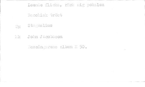 //// Leende flicka, räck rig pokalen Bacchisk tröst //// Stanelius //// John Jacobsson -.3assånarens album H 50. ////