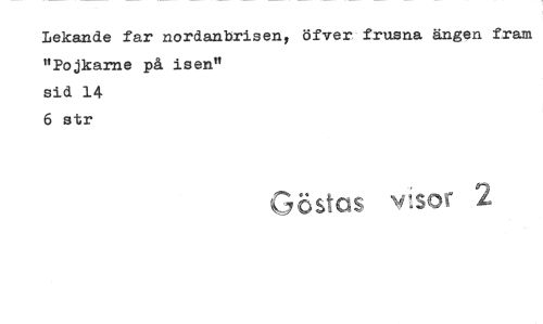 //// Lekande far nordanbrisen, öfver frusna ängen fram "Pojkarne på isen" //// sid 14 //// 6 sr //// Gösta vsor ////