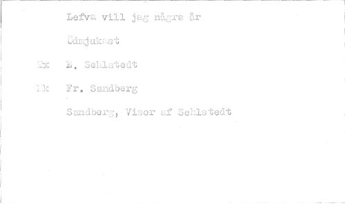 //// Lefva vill jag några år dmjukas //// Selastedt lk Fr. Sandberg //// Sandber, Visor af SeLlstedt ////