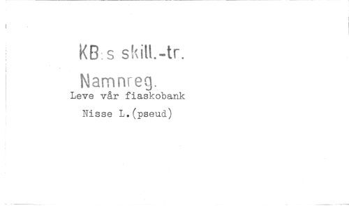 //// KB.s skitt.-tr. //// Narnnreg. //// Leve vår fiaskobank //// Nisse L.(pseud) ////