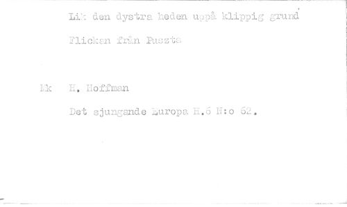 //// Li:den dystra keden u9-7?). klippij j:rund if1iokrn Puszta //// Lk L, soffman //// Det sjungande'Juropa H.6 N:o 62. ////
