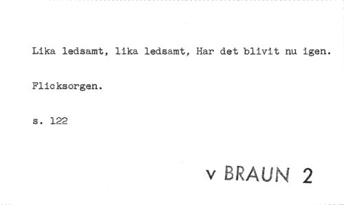//// Lika ledsamt, lika ledsamt, Har det blivit nu igen. Flicksorgen. //// s. 122 //// v BRAUN 2 ////