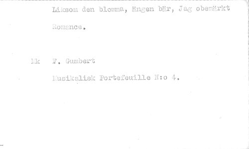 //// Liksom den blorna, ängen bär, Jag obemärkt .S.omance. //// rk 2. Gumbert //// I usikalisk Portefeuille 11:o 4. ////