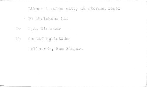 //// Likson i mulewnatt, di stormen rasar //// - Pi kärlekens haf //// •. iacander //// Lk Gustaf lAllström //// :.ellström) Fem Sånger. ////