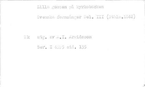 //// Lilla gossen på kyrkobacken //// Svenska fornsänger Del. III (Sthlm.1842) //// utg. av Arwidsson //// Sei 1 4'.)95 sid. 135 ////