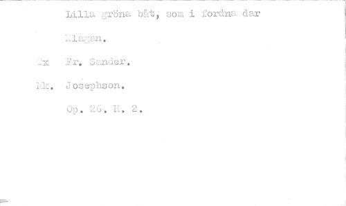 //// Lilla gröna båt) som i fordna dar 12.azan. //// 2x Fr. Under. //// Jopephson, //// Op. 26, H. 2. ////