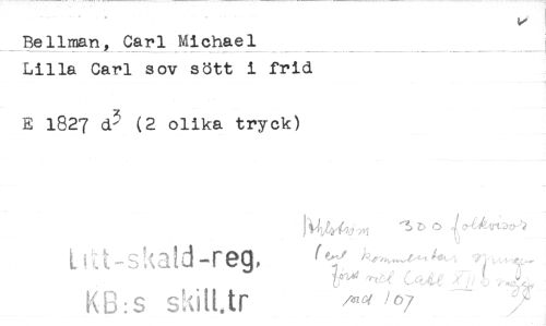//// Bellman, Carl Michael Lilla Carl sov sött i frid //// E 1827 0 (2 olika tryck) //// b ö IY-641:Doi2 //// Liu.-skald-reg, C C.-4-6 //// KB:s 74 ) ////