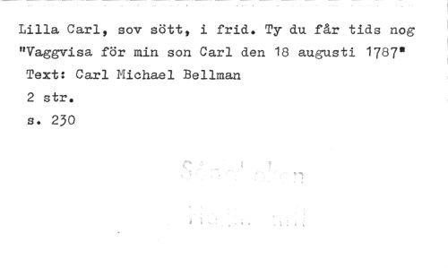 //// Lilla Carl, sov sött, i frid. Ty du får tids nog "Vaggvisa för min son Carl den 18 augusti 1787• Text: Carl Michael Bellman //// 2 str. //// s. 230 ////