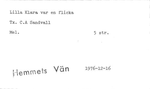 //// Lilla Klara var en flicka //// Tx. C.A Sandvall //// Mel. 5 str. //// ternmets Vän 1976-12-16 ////