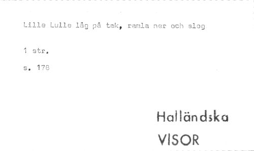 //// Lille Lulle låg på takt ramla ner och slog //// 1 strö s. 178 //// Halländska //// VISOR ////