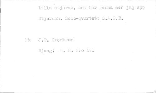 //// Lilla stjerna, acl.: hur -erna ser jag upp Stjernan. Solo—vrett //// hk J.P. CrQhharan //// Sjung'. 8. U:o 191 ////