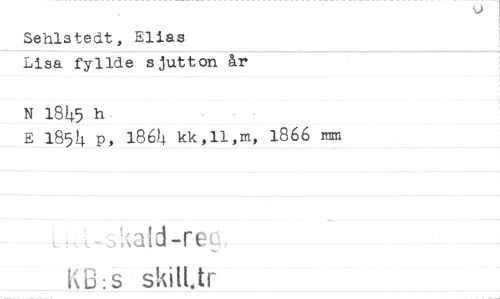 //// Sehlstedt, Elias //// Lisa fyllde sjutton år //// N 1845 h //// E 185 p, 1864 kk,l1,m, 1866 mm //// t. //// skitUr ////