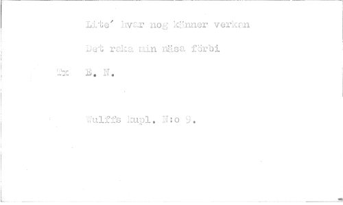 //// Lite' hvr no' känner verkan //// .1)et raka nin näsa förbi //// 2:g: B. N. //// Wulffs kupl. N:o J. ////