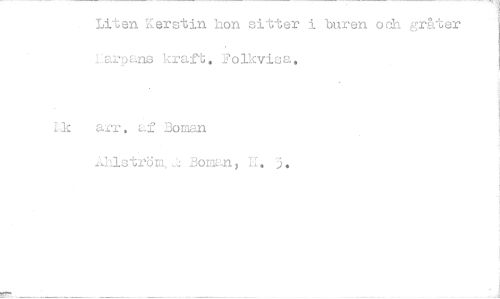 //// Liten Kerstin hon sitter i buren och gråter Lewpans kraft, Folkvisa, //// Ilcarr. af Boman //// Bomn, h. 3, ////