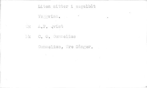 //// Liten sitter i ugelbåt VajTvis. //// . 2x A.P. .vist //// lik C. 0. Gumaelius //// Gutelius, Tre 3.53.nger. ////