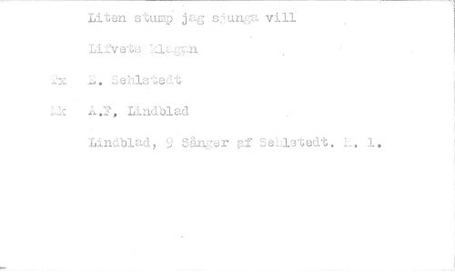 //// Liten stupp jag eInga vill //// Lifvets 7.dgan //// 2x Sehlstedt //// Lie A.F, Lindblad //// Lindblad, U Sånger .if SeU3tedt. L. 1, ////