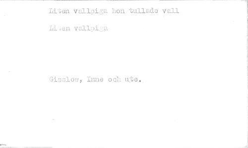 //// Liten vallpiga hon tullade vall //// Lien vallpiga //// Gisslow, Inne och ue., ////