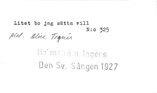 //// Litet bo jag sätta vill //// N:o 325 //// r.iners //// Den Sv. Sången 1927 ////