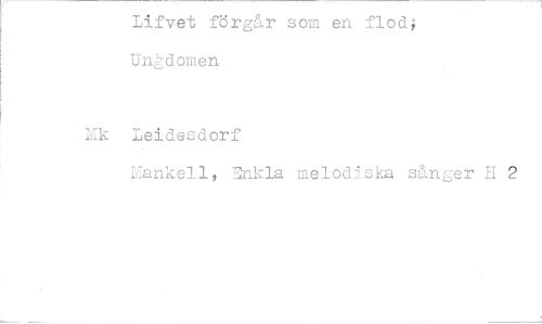 //// 1 -7 //// Lifvet förgår som en flod; Unkdomen. //// svik Leidesdorf //// :Manken, Enkla melodiska sånger H 2 ////