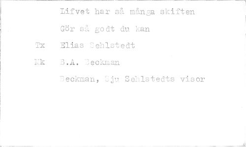 //// Lifvet har så många skiften Gör så godt du kan //// Tx Elias Sehlstedt //// 1J,k B.A. Tieckman //// 73eokman, Eju Sehlstedts visor ////
