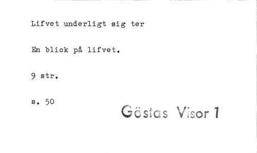 //// Lifvet underligt sig ter //// En blick på lifvet. //// 9 str, s. 50 //// (j.' Ni' CSkeS V ////