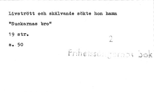 //// Livstrött och skälvande sökte hon hamn "Suckarnas bro" //// 19 str• //// se 50 ////