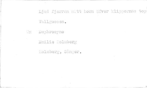 //// Ljud fjerran ittt horn öfver klippornas bop: Vallgossen. //// 2x Euphrosyne //// Emilie Lolmberg //// ',Lolmberg, Såner. ////