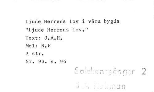 //// Ljude Herrens lov i våra bygda "Ljude Herrens lov." 2 //// Text: J.A.H. //// Mel: N.E //// 3 str. //// Nr. 93. s. 96 //// n r; r //// ////