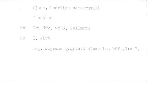 //// Ljusa, herrliga som. arqvll //// I natten //// 2x 2ri öfv, af Wallmark //// k I, Witt , //// ljdgrens (ygrtett Ubum 1:a left,N:o 7. ////