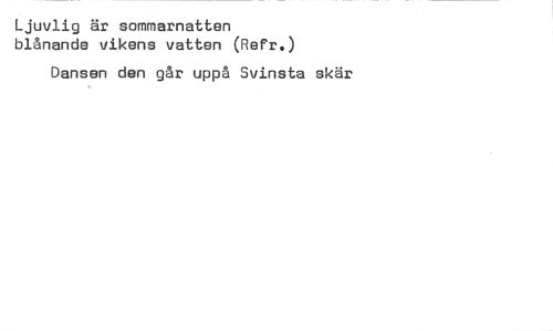 //// Ljuvlig är sommarnatten blånande vikens vatten (Refr.) //// Dansen den går uppå Svinsta skär ////