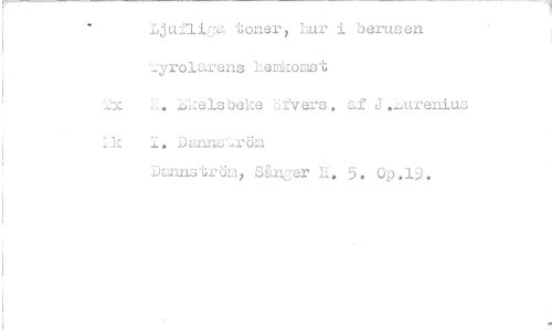 //// Ljuflir:a toner, hur i berusen r2yrolarene hemkomst //// 2x 'jfvers. af j..2,urenius //// 1.k Denns'.röm //// Dannström, Sånger L. 5. Op.19. ////