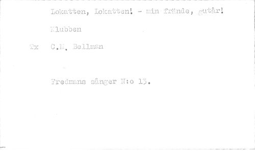 //// Lokatten, Lokattenl - min frh1nde, 7utårl Klubben //// 2x C.L. Bellman //// Fredmans sånger N:o 13. ////