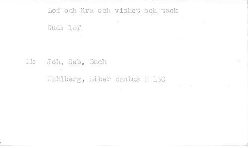 //// Lof och :dra och vishet och tack Guds lof //// Lic Joh, Sel). Bach //// I',:ihlberg, Liber cantus h 130 ////
