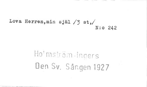 //// Lova Herren,min själ /3 st, //// /N:o 242 //// Ho'rnssöm-lneers //// Den Sv. Sången 1927 ////