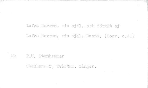 //// Loiva herran, min sjEl, och förgt ej Lofva "Herran, min själ, Duett, (Sopr, o,A, //// Lc P.U• StenhEumar //// Stenharr, Astim. Sånger, ////