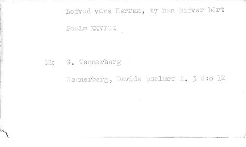 //// Lofvud vare herran, ty han hafver hört //// Lac G. Wennerberg //// Weruierber,,y, Davids psalmer 3 I,T:o 12 ////