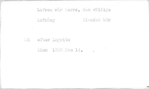 //// Lofven vår L'Brre, den vndige //// Lofs'Ang Blandad kör //// efter Layritz //// non 1860 Y:o 14. ////