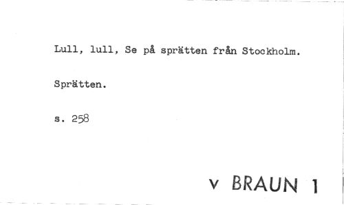 //// Lull, lull, Se på sprätten från Stockholm. //// Sprätten. //// s. 258 //// v BRAUN 1 ////