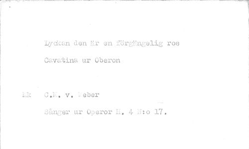 //// Lyckan den Ur en fUrjngelig ros Cavatina ur Oberon //// Lk C , v. ;,eber //// Säner ur Operor E. 4 17. ////
