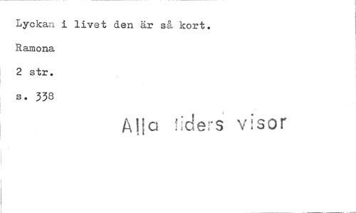 //// Lyckan i livet den är så kort. //// Ramona //// 2 str. //// s. 338 //// A!1a ride:-s visor ////