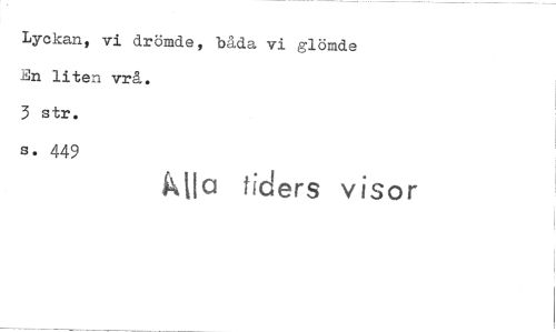 //// Lyckan, vi drömde, båda vi glömde En liten vrå. //// 3 str. //// s. 449 //// klia tiders visor ////