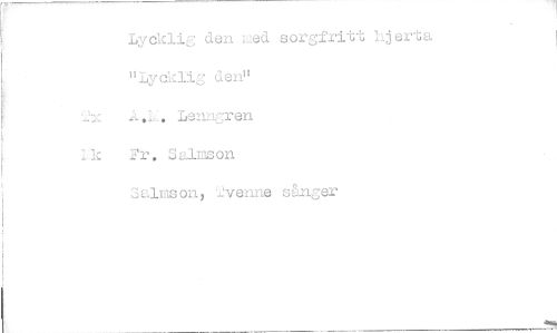 //// Lycklig den 1,/ed sorgfritt hjerta "'Lycklig den" //// Lenn:yen //// Fr, Ulm-30n //// Salmson, 2venne sånger //// _14 ////