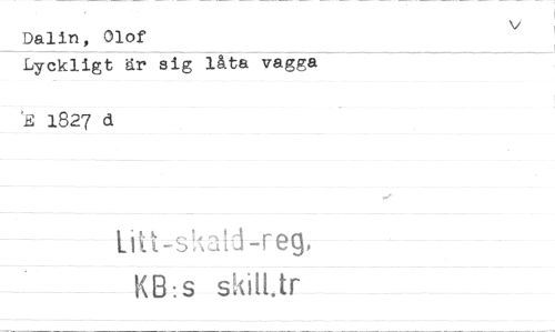 //// Dalin, Olof //// Lyckligt är sig låta vagga //// S 1827 d //// Litt-s!"(ald Feg, //// KB:s skalk ////