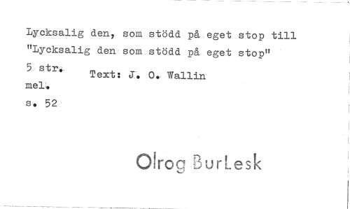 //// Lycksalig den, som stödd på eget stop till "Lycksalig den som stödd på eget stop" //// 5 str. Text: J. 0. Wallin //// mel. //// s. 52 //// Oirog 'Burlesk ////