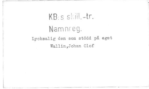 //// KB: s //// Namnreg. //// Lycksalig den som stödd på eget //// Wallin,Johan Olof ////