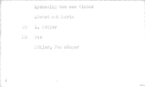//// Lycksalig den som .1.slcar ...dvard och ILI.o.ria //// . Tz .L. höijer //// Lik D:o //// Linjer, 2era sånger ////