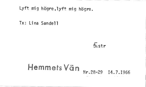 //// Lyft mig högre,lyft mig högre. Tx: Lina Sandell //// Sstr //// Hemmets Vän Nr.28-29 14.7.1966 ////